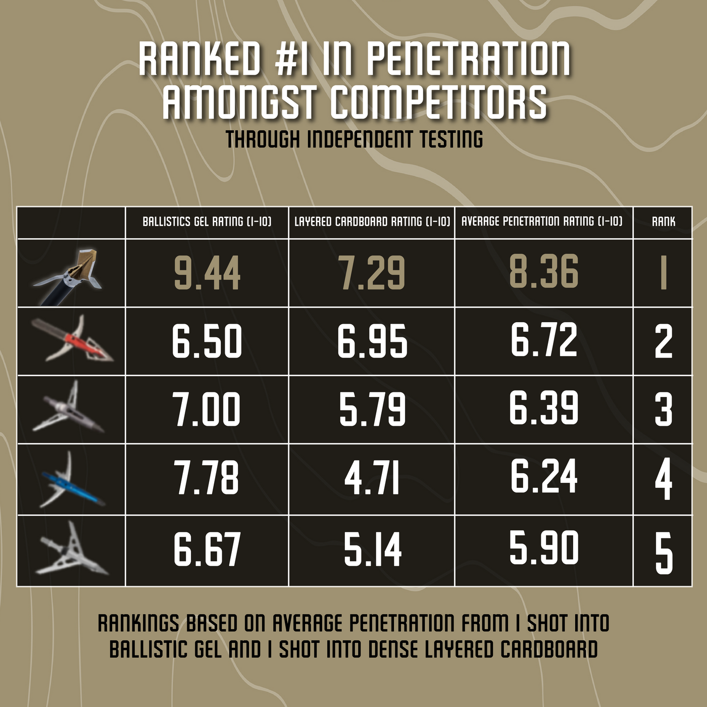 Penetration Versus Others - Tested and proven to deliver 15% more penetration than other hybrid and expandable designs through independent testing.