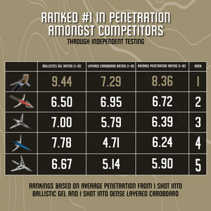 Unmatched Accuracy - Ranked #1 as the most accurate broadhead through independent testing, with a 0.06-inch shot variance at 60 yards, outperforming competitors by 26%.