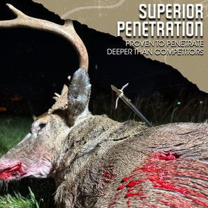 Versatile Hybrid Design - Combines the reliability of fixed blade broadheads with the devastating cutting diameter of expandable broadheads. The 0.75” fixed blades and 1.75” expandable blades create a total 2.5” cutting diameter for an optimized combination of penetration and blood trailing ability.