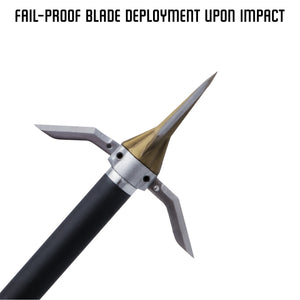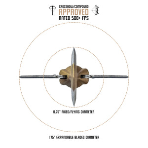 Versatile Hybrid Design - Combines the reliability of fixed blade broadheads with the devastating cutting diameter of expandable broadheads. The 0.75” fixed blades and 1.75” expandable blades create a total 2.5” cutting diameter for an optimized combination of penetration and blood trailing ability.