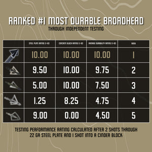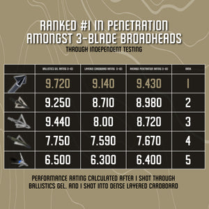 Proven Penetration - 15% More Penetration than competitor 3-blade designs, thanks to its bone-splitting tanto tip that delivers deep impacts and ensures pass-through shots.